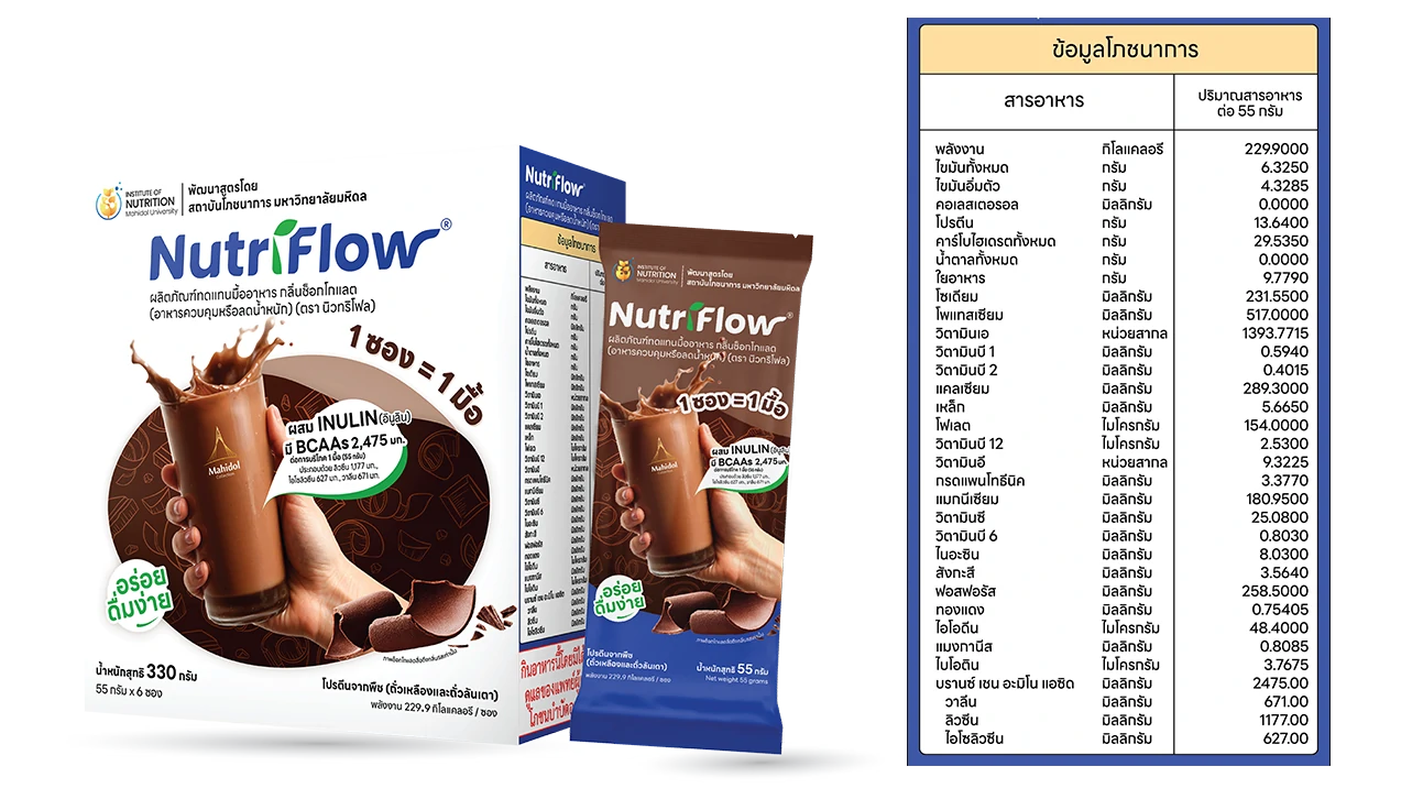 นิวทริโฟล (Nutriflow®) เป็นผลิตภัณฑ์อาหารทดแทนมื้ออาหารที่ ได้รับการออกแบบสูตรโดยตรงตามหลักเกณฑ์